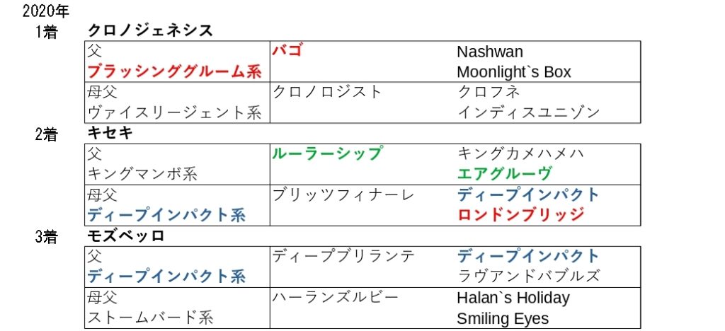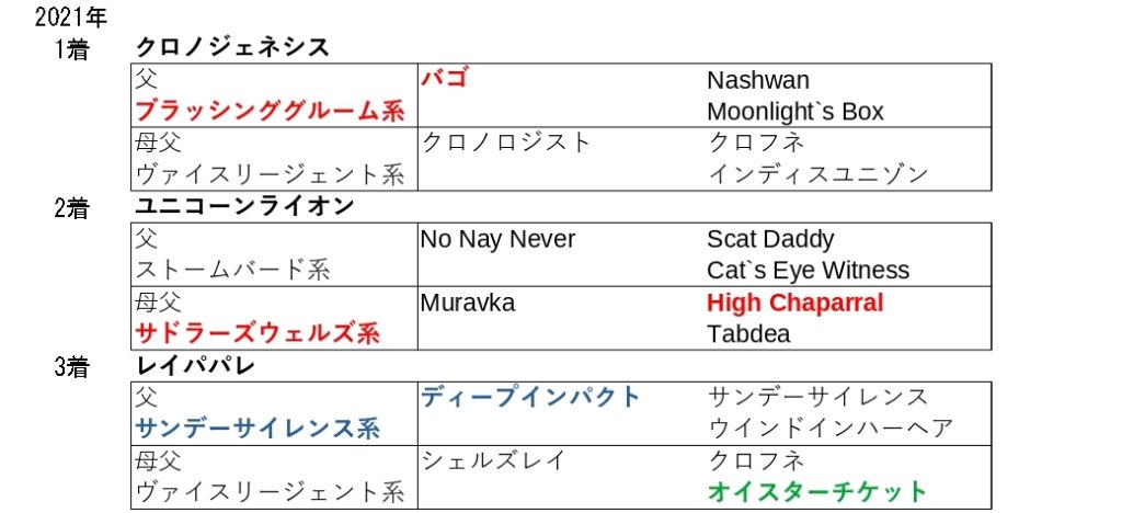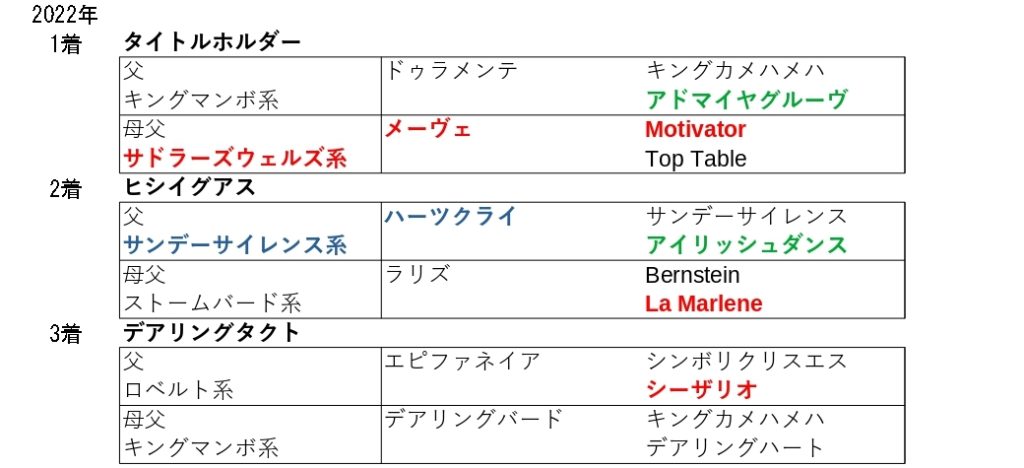また、22年までは4年連続で連対馬はこの血統を持っていて、24年も3着馬が該当したことからも、この血統を持つ馬が中心となっています