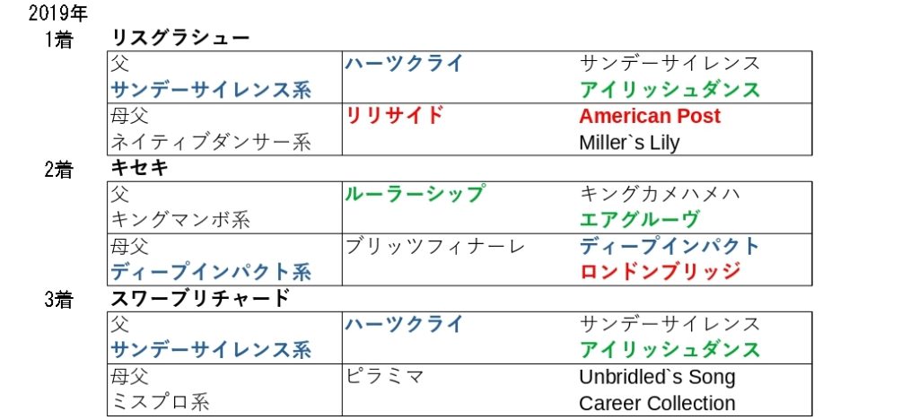 2019年は、1~3着の全ての馬券圏内馬はこの血を持っていました