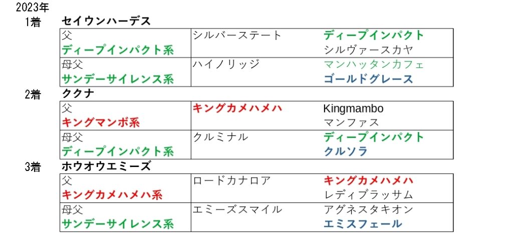 という配合の馬が、23年まで4年連続で連対していました