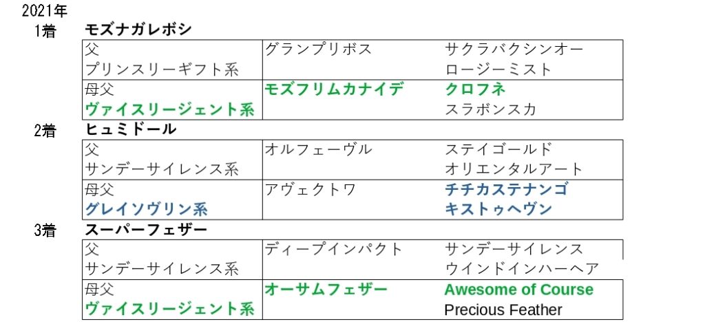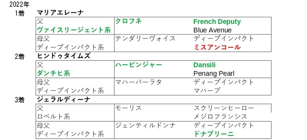 3勝を挙げ、22年の勝ち馬の母母もこの系統でした