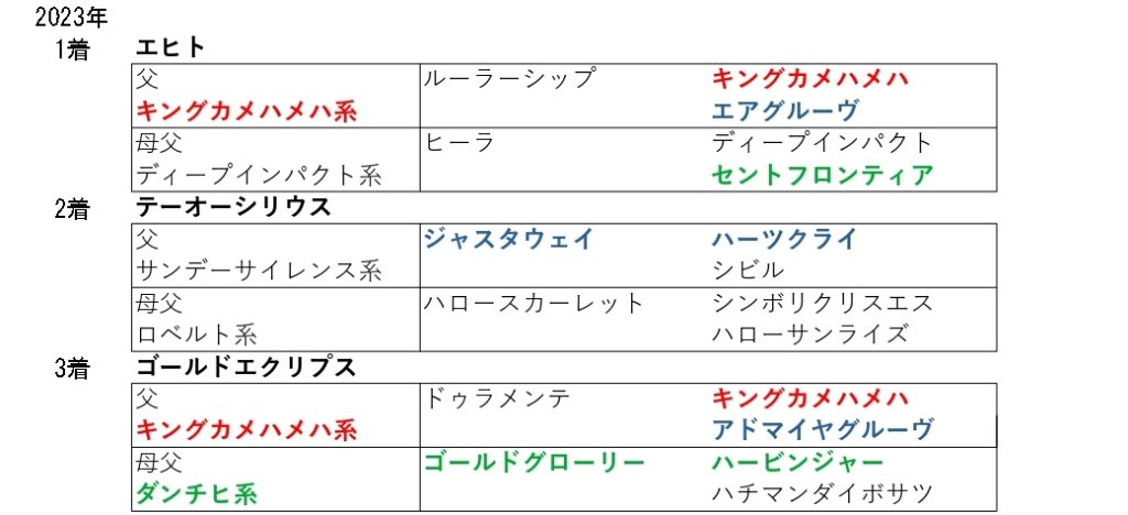 23年の3着以内馬は全て該当しているように、このレースや重賞に限らずトニービンを内包する馬は小倉の芝のレースでの注目血統ということで、この血を持つ馬にも注目です
