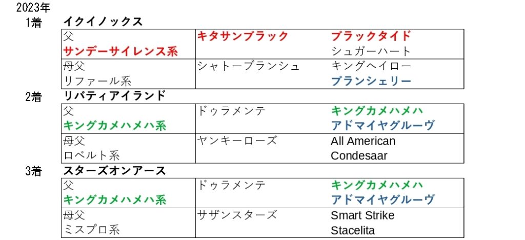 23年・24年の好走馬はトニービンを内包し、4年連続で勝ち馬は該当していました