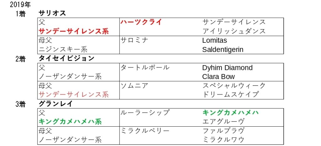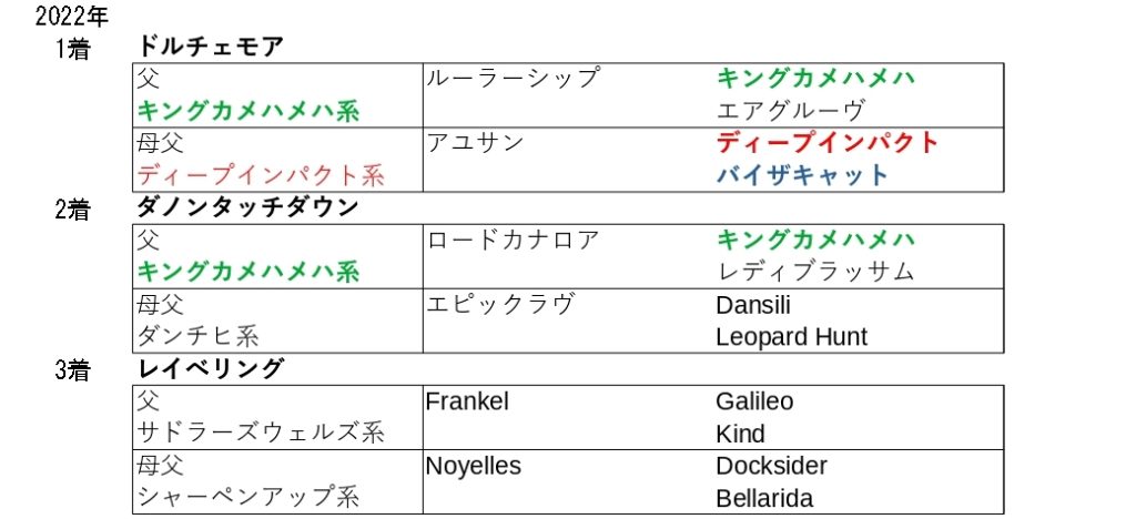 近年はホープフルSがG1に昇格し、この時期でマイル寄りに適性のあるような馬が使われていますが、クラシック路線に繋がるレベルになっていることから、サンデーサイレンス系の産駒や父か母父キングカメハメハ系という主流血統が活躍するレースとなっています