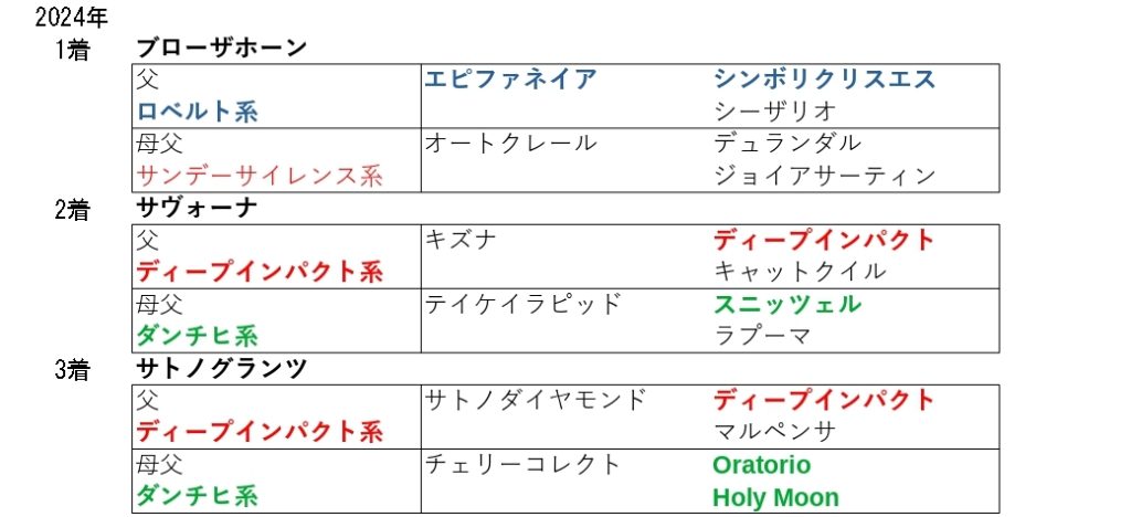 といったノーザンダンサー系を母父や母系に持つ馬も大活躍しています