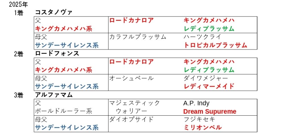 25年の好走馬の母父はサンデーサイレンス系でした