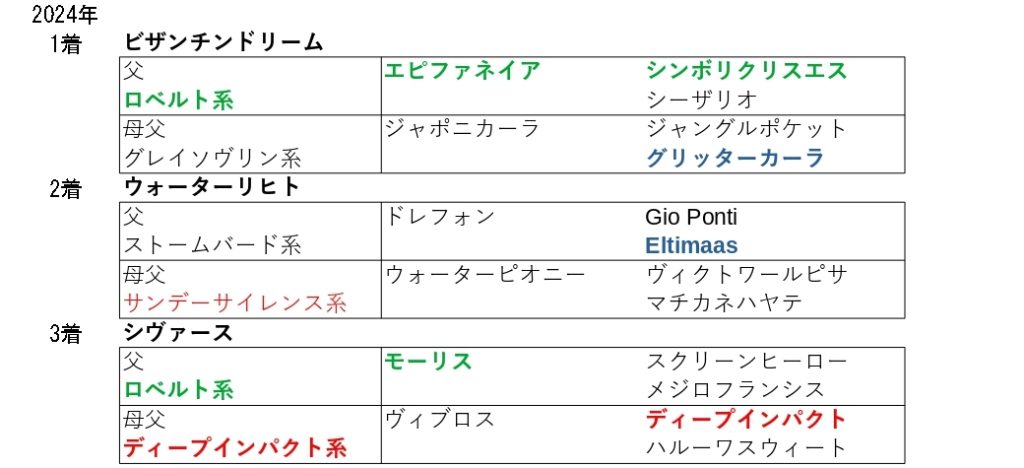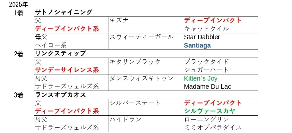 2勝を挙げていて、25年の2着馬の母父はこの血統を内包していました