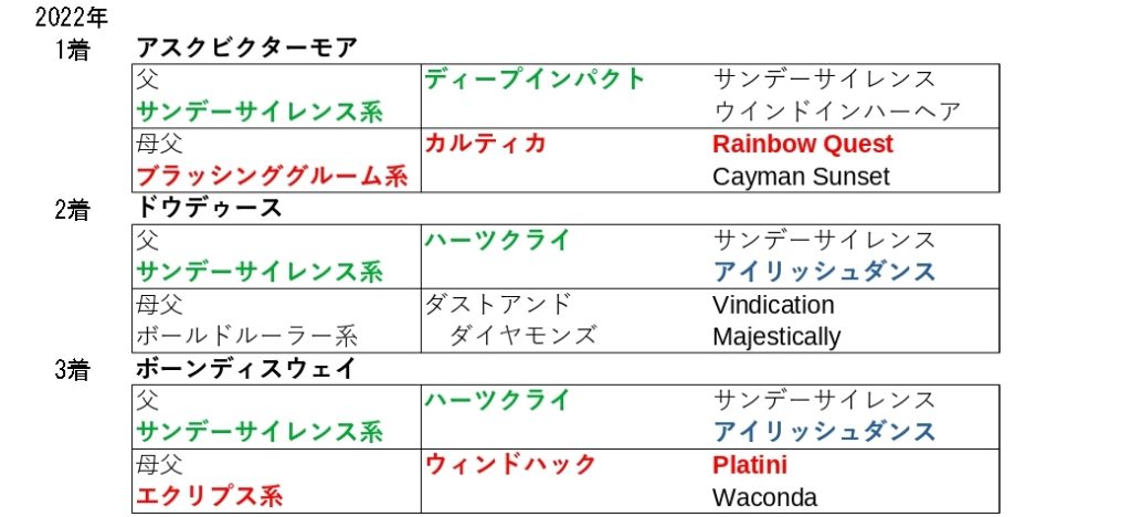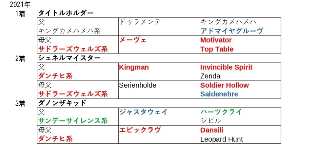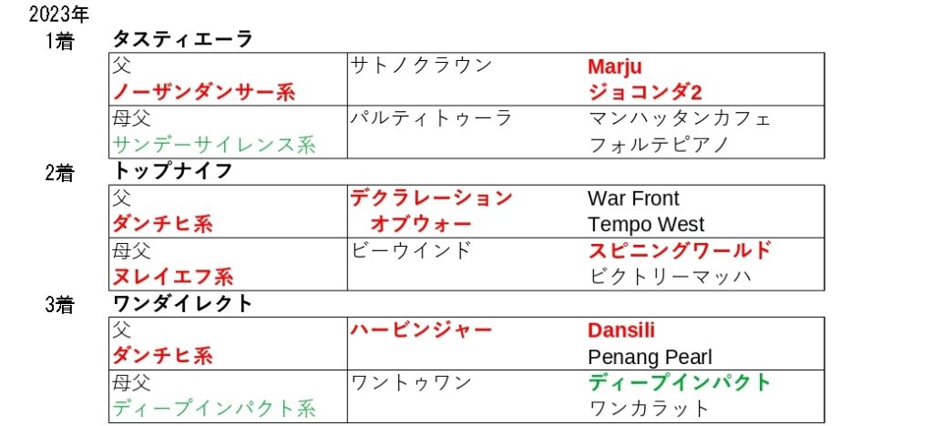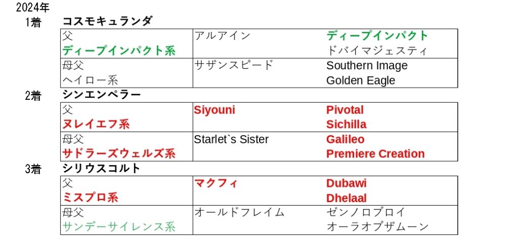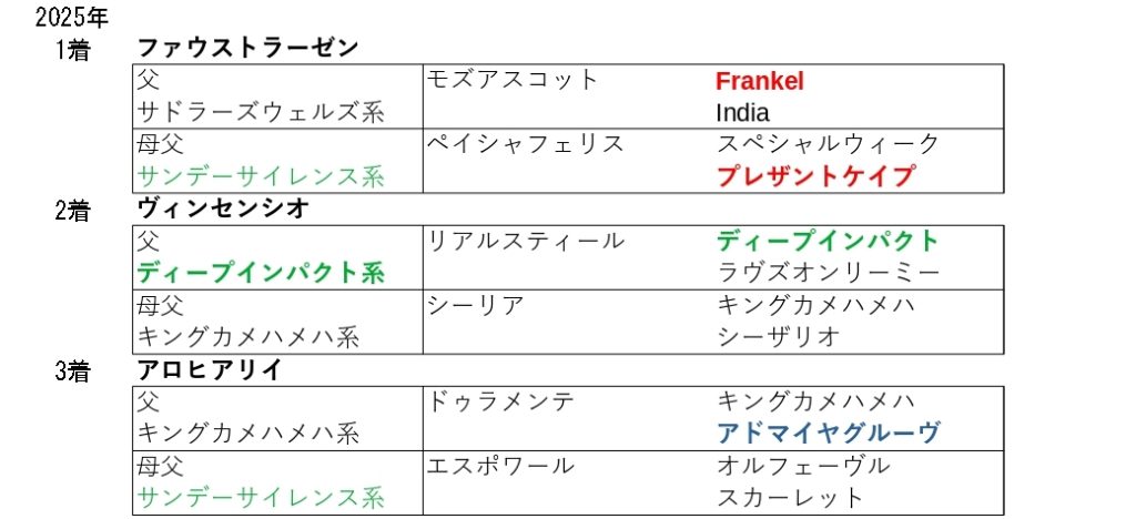 25年の勝ち馬の父と母母は欧州型でした